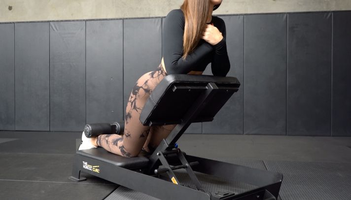 Kneel on the pad, hook your ankles under the support bar, and slowly lower your body forward while resisting the descent. Push yourself back up or use band assistance if needed. It’s the gold standard for building hamstring strength and control.